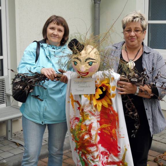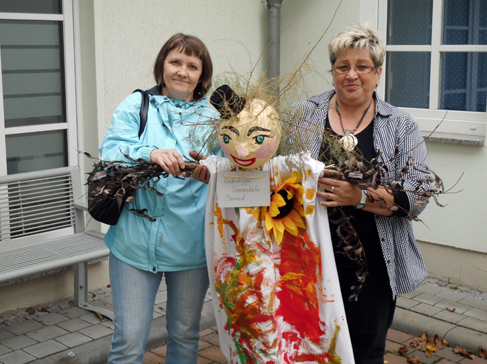 Hier von der Kinderkrippe Sonnenkäfer Bismark Monika Hurtz mit dem herbstlichen Exemplar aus dieser Einrichtung gemeinsam mit Kornelia Regber, Mitarbeiterin der Einheitsgemeinde.