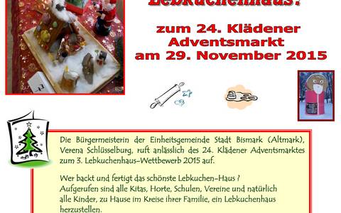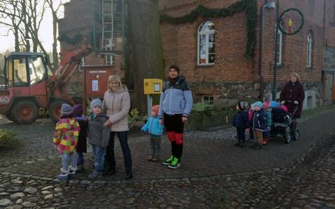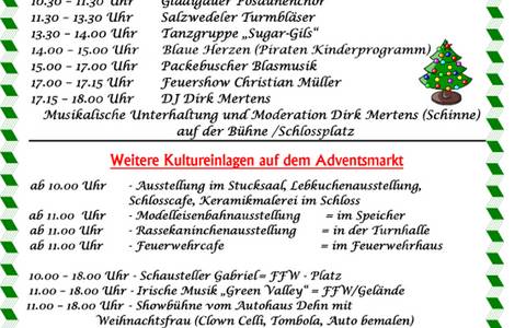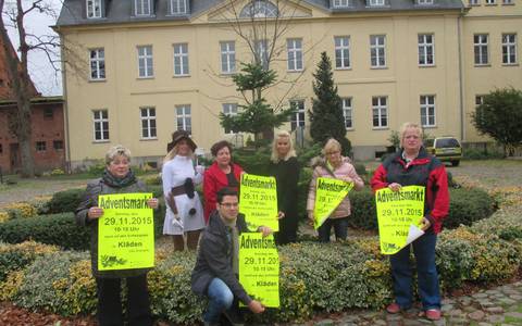 Auftakt zum 24. Klädener Adventsmarkt unter Federführung der Bürgermeisterin, 3.v.l., auf dem Klädener Schlossplatz. Mit dabei waren Mitarbeiter der Einheitsgemeinde sowie Diana Wernecke, Vorsitzende des Vereins Seniorentagesstätte Schloss ...