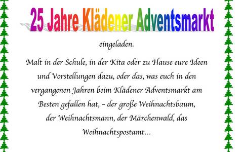 Am 1. Adventssonntag, 27. November 2016 von 10.00 bis 18.00 Uhr 25 Jahre des weithin bekannten Klädener Adventsmarktes stehen nun vor der Tür. Einheitsgemeindebürgermeisterin Verena Schlüsselburg wird gemeinsam mit den Ortsbürgermeistern, ...