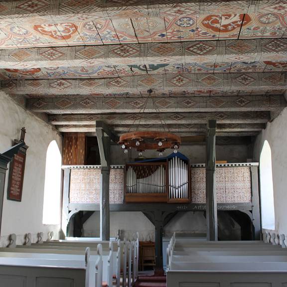 Die Dorfkirche, ein flachgedeckter Feldsteinbau, steht inmitten des Friedhofes an der Dorfstraße. Es handelt sich um ein zweiteiliges Bauwerk bestehend aus Schiff und leicht eingezogenem rechteckigem Chor ohne Apsis. Der Bau erfolgte wohl in der 2. Hälfte des 13. Jahrhunderts. Aus dieser Zeit stammen wahrscheinlich die beiden spitzbogigen Fenster auf der Ostseite. Am Anfang des 18. Jahrhunderts ist über dem Westteil ein quadratischer Fachwerkturm errichtet und in der ersten Hälfte des 19. Jahrhunderts restauriert worden. Das Kronendach über dem Schiff ist mit Biberschwänzen, der Chor als Doppeldach und der Turmhelm mit Schablonenschiefer gedeckt. Unter der Traufe der Südseite ist am Schiff noch ein 40 cm breites Putzfries mit eingeritztem und gemaltem geometrischem Bandmuster in rot und weiß zu sehen. Auf dem alten Fugenverstrich ist stellenweise noch die Fugenritzung in Form von Doppellinien zu erkennen.Schiff und Chor haben flache Decken mit axtbehauenen Balken und sind durch Triumphbogen getrennt, der nachträglich (erste Hälfte des 19.Jahrhunderts) flachbogig erweitert ist, ursprünglich aber spitzbogig gewesen zu sein scheint. Auf der Nordseite befindet sich das vermauerte Rundbogenportal. Zwischen den Ostfenstern ist im Putz ein Weihekreuz angebracht. Der Schnitzaltar um 1450/60 zeigt im Mittelschrein die Madonna mit Petrus und Margarete vor Goldgrund, in den Flügeln sind die 12 Apostel in 2 Reihen.