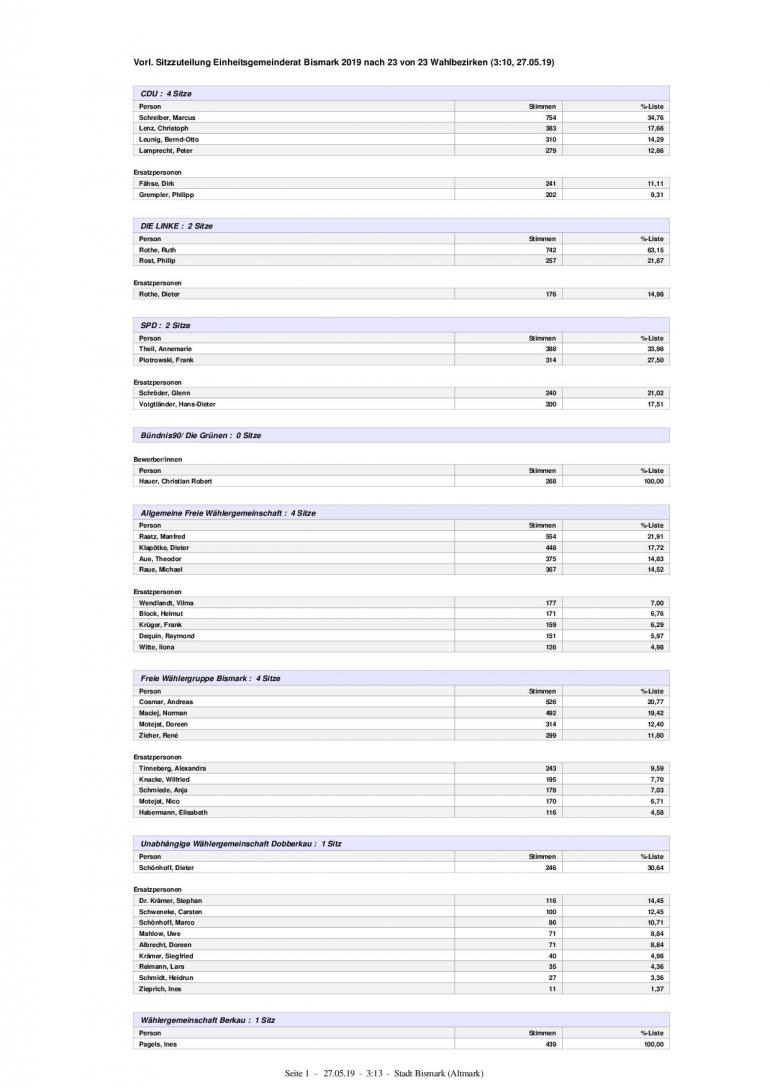 Wahl Einheitsgemeinderat 2019