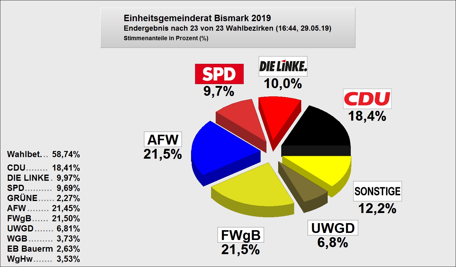 Wahl Einheitsgemeinderat 2019 Hier finden Sie die Zusammenstellung zum Endergebnis. Endergebnis-Stadtrat-2019-Zusammenstellung77 KBStadtrat 2019 Hauptzusammenstellung