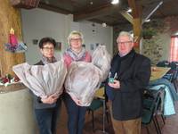 Zum Dank hatte Verena Schlüsselburg für jeden der 3 Besucher aus Gardelegen einen schönen Weihnachtsstern parat , der angesichts der an dem Tag herrschenden Minus grade, eingewickelt in Papier, überreicht wurde.