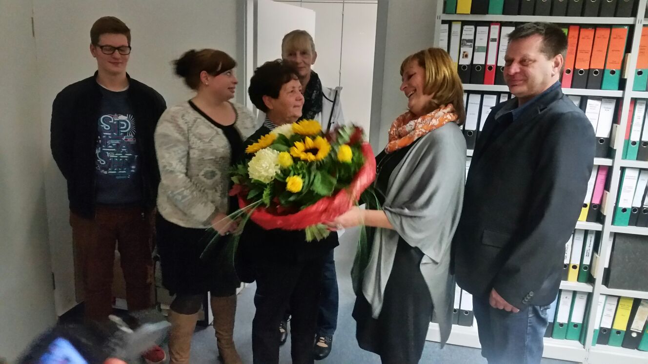 Annegret Schwarz hier auf dem Foto im Kreise ihrer Familie, bekam 1.591 Stimmen von den 7.193 Wahlberechtigten, auf Mirko Völkel entfielen 541 Stimmen.