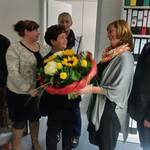 Sie wünschte ihrer Nachfolgerin alles Gute und überreichte einen schönen Blumenstrauß.