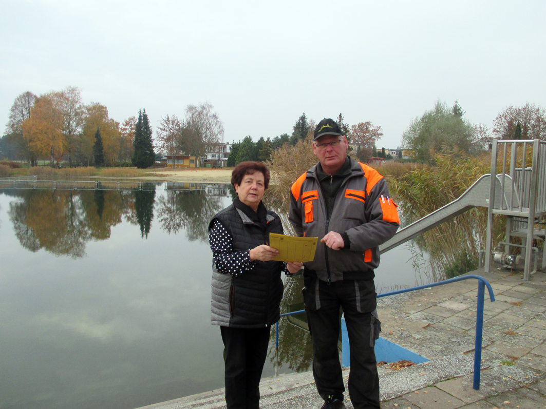 In den ersten Vor-Ort Begehungen und Gesprächen, wie hier auf dem Foto, noch vor dem Schnee, gab es einen Austausch zwischen Bürgermeisterin Verena Schlüsselburg und Bademeister Volker Gille zum Einsatz dieser Fördermittel.