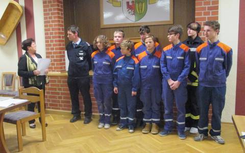 Einheitsgemeindebürgermeisterin ehrt die Jugendfeuerwehr Badingen während der November-Stadtratssitzung