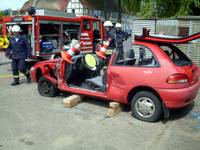 Ein Unfallopfer musste aus einem PKW gerettet werden, Schere und Spreitzer kamen zum Einsatz. Kamerad Ralf Höpfner bewies sich dabei als gekonnter Moderator.