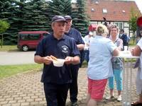 Die Verpflegung aus der Gulaschkanone übernahm der Förderverein der Bismarker Feuerwehr. Ab dem frühen Nachmittag feierten die Poritzer und ihre Gäste weiter mit Kaffee und Kuchen und die Kinder freuten sich auf die Hüpfeburg, denn das Feuerwehrjubiläum wurde mit dem Dorffest gemeinsam in froher Runde gefeiert.
