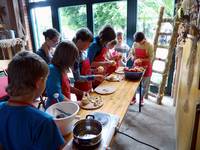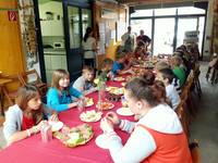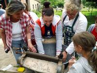Nach der Stärkung nahmen die Kinder mit ihren Erzieherinnen die einzeln aufgebauten Stationen in Beschlag. Sie wuschen Wäsche wie anno dazumal, melkten eine Kuh, besuchten die Heimatstube des Altmarkhofes und eroberten die Taststrecke. Abgerundet wurde der Vormittag mit der Herstellung von Apfelmus, den sich die Kinder sogleich mit frisch zubereiteten Eierkuchen schmecken ließen.