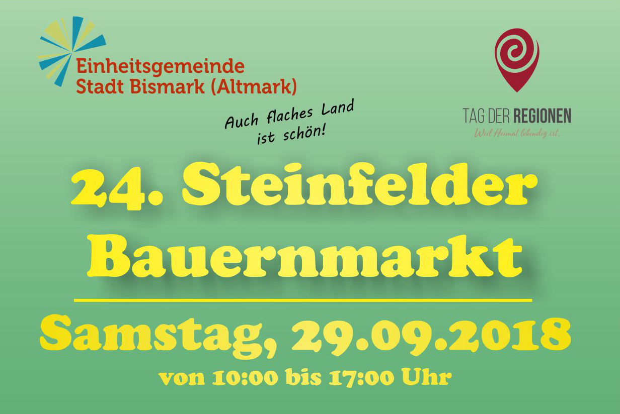 Von Haus, Hof und Garten - für Haus, Hof und Garten auf dem idyllisch gelegenen Schützenplatz in Steinfeld statt. Auch in diesem Jahr ist der Bauernmarkt Bestandteil des Tags der Regionen, der in diesem Jahr unter dem Motto Weil Heimat lebendig ist -steht.Um 10.00 Uhr eröffnet Bürgermeisterin Annegret Schwarz gemeinsam mit den Ortsbürgermeistern der Einheitsgemeinde und Ehrengästen den Steinfelder Bauernmarkt.