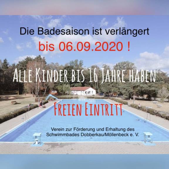 Die Stadt Bismark hat die Badesaison bis Sonntag, 06.09.2020 verlängert. Der Förderverein nimmt dies zum Anlass und es haben weiterhin alle Kinder bis 16 Jahre freien Eintritt! Also kommt vorbei und schwimmt noch eure letzten Bahnen im Jahre 2020. Wir freuen uns auf euren Besuch!