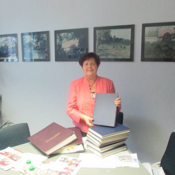 Die vielfältigen sichtbaren Ergebnisse in der Region sprechen für diese 25 Jahre – die umfangreichen Chronikbände, die hier auf dem Tisch vor ihr liegen, zeichnen einen Teil davon in Wort und Bild auf.