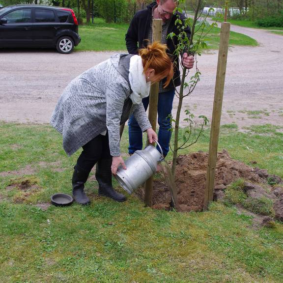 Baumpflanzung am Tag des Baumes in gemütlicher Dorfrunde