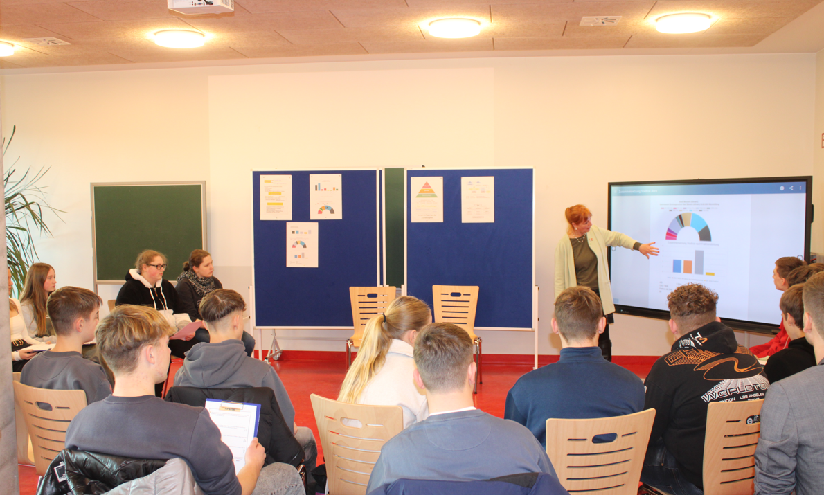 Am gestrigen Donnerstag war es schließlich soweit: Unsere Bürgermeisterin der Einheitsgemeinde, Annegret Schwarz, folgte der Einladung von Sozialkundelehrer Oliver Merta um einen ganz besonderen Unterrichtstag hinsichtlich der Themen Politik und politische Beteiligung mit ihren Erfahrungen zu bereichern.