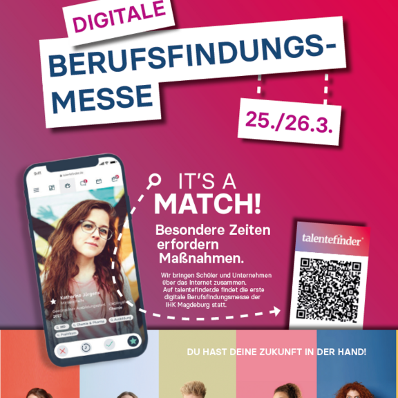 Am 25. und 26. März 2021 ist es wieder soweit: In jährlicher Tradition laden die Industrie- und Handelskammer und die Agentur für Arbeit zur Berufsfindungsmesse ein. Besondere Zeiten erfordern besondere Maßnahmen, daher wird die Messe in diesem Jahr digital stattfinden.