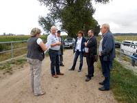 Genau an dieser Stelle hilft jetzt das vom ALFF Altmark bewilligte Projekt zum Ausbau des ländlichen Weges in der Gemarkung Büste weiter. Vor diesem Hintergrund lud die Bürgermeisterin der Einheitsgemeinde Stadt Bismark (Altmark) den stellvertretenden Leiter des ALFF Altmark, Siegfried Engelhardt, sowie ihren Amtskollegen Karsten Ruth, Bürgermeister der Einheitsgemeinde Stadt Kalbe und die Vertreter der Ortschaften Vienau / Mehrin Fritz Borchmann und Landwirt und Ortsratsmitglied Werner Mertens, sowie die Ortsbürgermeister Paul Blauert und Uwe Lenz Büste und Meßdorf- ein, um den Start für die Wegeverbindung an Ort und Stelle zu geben.