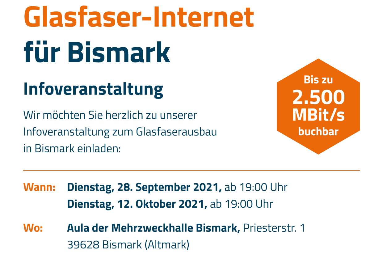 Einladung - Informationsveranstaltung Glasfaser für Bismark 28.09.2021