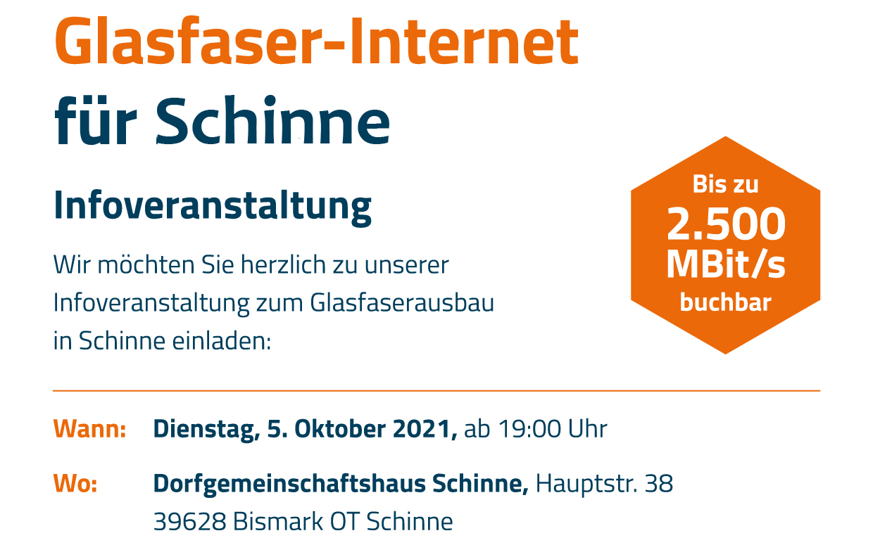 Einladung - Informationsveranstaltung Glasfaser für Bismark – OT Schinne