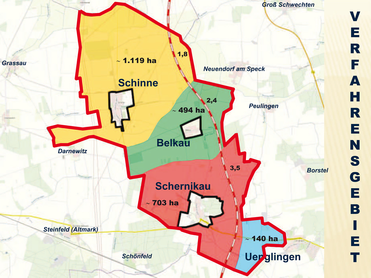 wird in Teilgebieten der Einheitsgemeinde Stadt Bismark - Gemarkungen: Schernikau, Belkau, Schinne und im Teilgebiet der Einheitsgemeinde Hansestadt Stendal - Gemarkung: Uenglingen - ein Unternehmensflurbereinigungsverfahren durchgeführt.