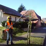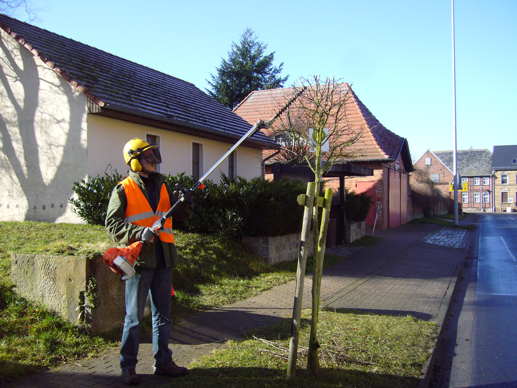 Baumschnittarbeiten waren in den zurückliegenden Wochen in der Einheitsgemeinde angesagt. Dabei war auch der FÖJ-ler Marvin Kersten mit im Einsatz, wie hier auf dem Foto in der Ortsmitte von Kremkau bei der Arbeit.