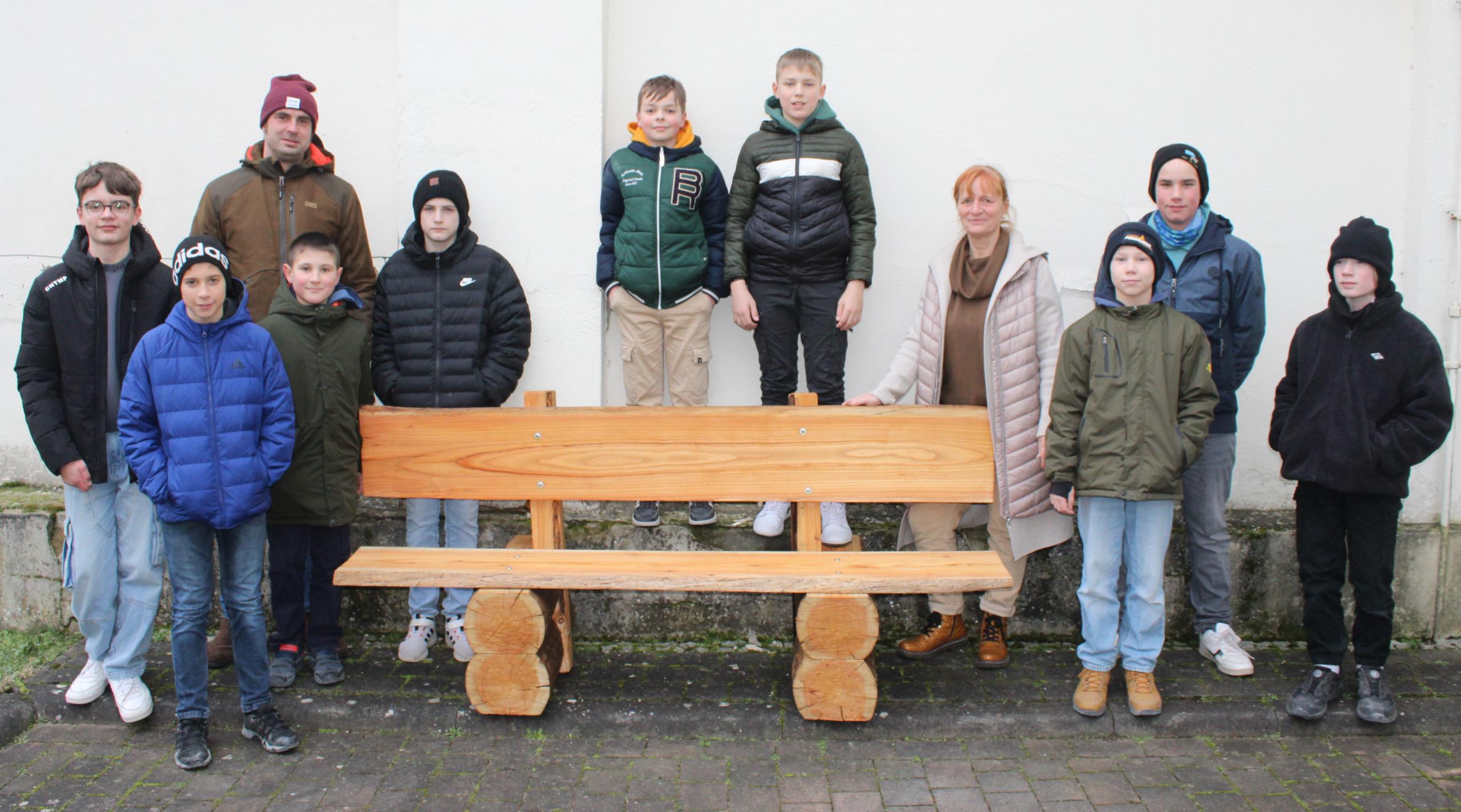 Handwerk-AG übergibt eigens gefertigte Holzbank an die Einheitsgemeinde