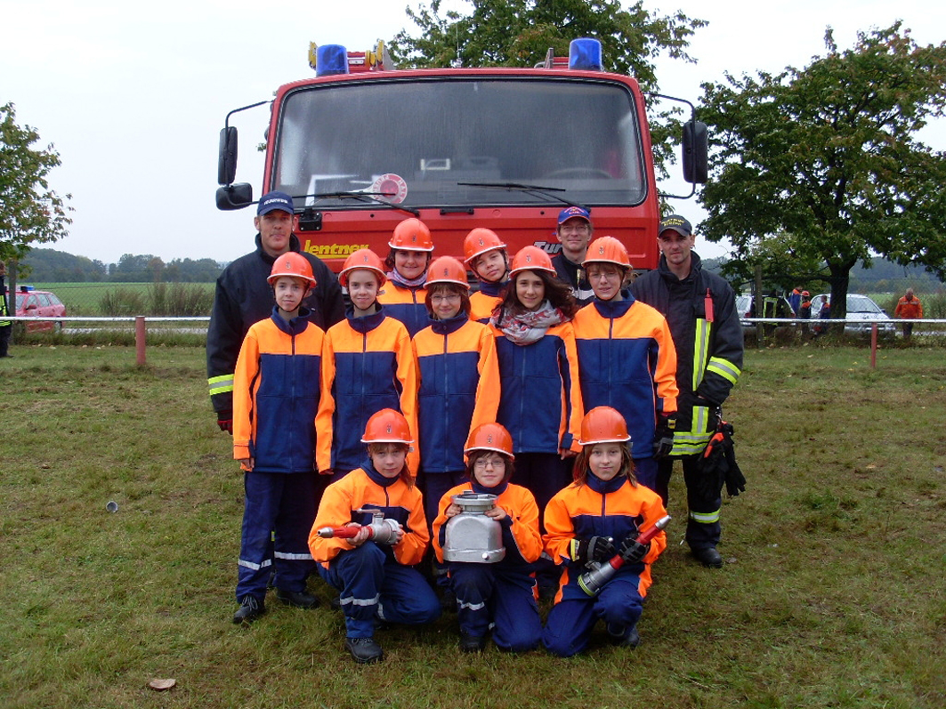 Die Teilnehmermannschaften aus Rochau, Buch, Bismark/ Büste, Miltern/ 2 Teams, Jarchau, Lüderitz, Schinne/ Grassau, Kläden, Klietz, Heeren, Stendal, Meseberg/ Dobbrun und Badingen hatten vor allem mit Dauerregen zu kämpfen. Trotzdem hatten alle Spaß und gaben ihr Bestes. Am Nachmittag standen dann auch die Sieger fest. Zum dritten Mal gewannen die Mädchen und Jungen der Feuerwehr Buch den Wanderpokal, der jetzt ihnen gehört. Bei der Schnelligkeitsübung waren die Badinger als Lokalmatadoren mit 47 Sekunden die Schnellsten.