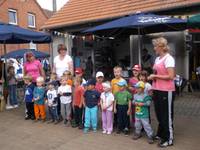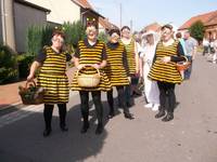Die Moderation lag natürlich wieder in den Händen von Dirk Mertens und die Schinnscher Frauen, als Bienen im Umzug dabei, sorgten für ein tolles Kuchenbuffett. Und der Dorfladen war natürlich auch auf dem Festplatz mit Eis und Süßigkeiten dabei.