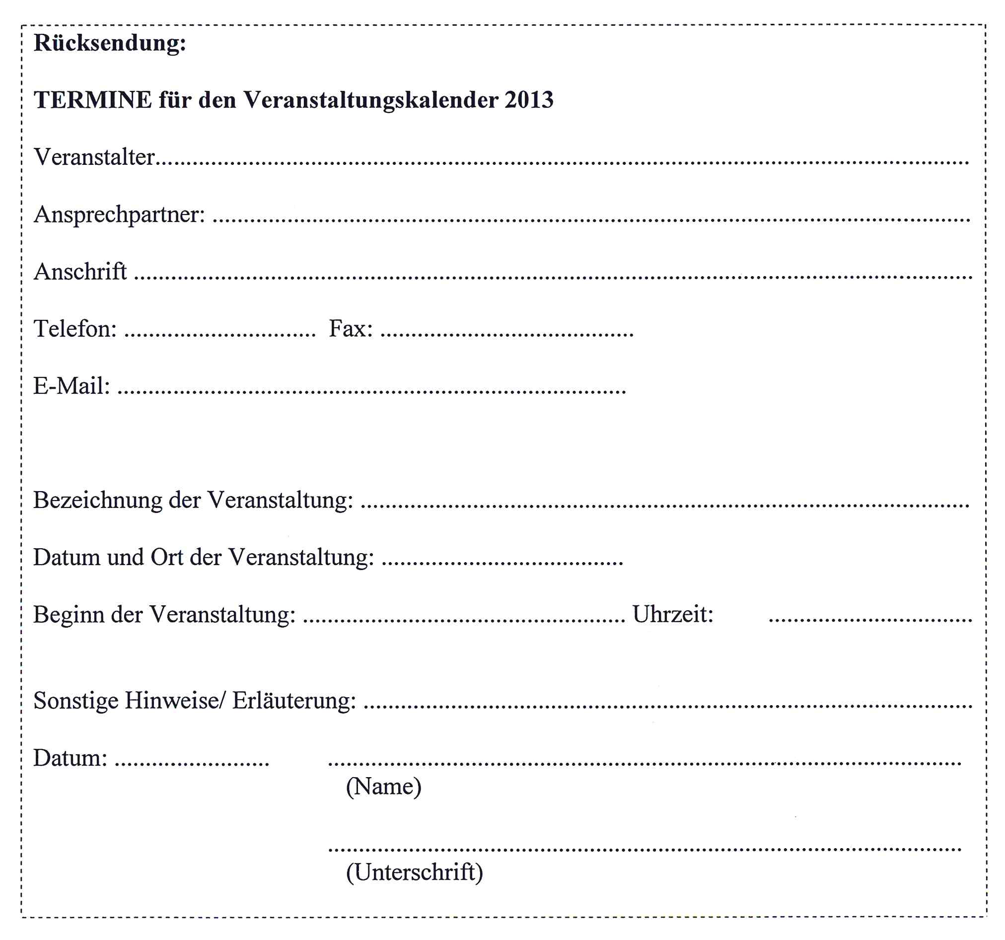 Deshalb wird allen Ortschaften, Vereinen, Schulen, Kitas, den Ortswehren und allen anderen Akteuren der Region, wie z.B. Gastwirten, Geschäftsleuten und Landwirten angeboten, sich einzubringen und ihre Termine für 2013 einzureichen.