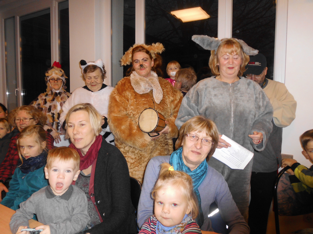 Nach der freundlichen Begrüßung durch Vereinsvorsitzende Martina Reimann begann die von allen mit Spannung erwartete Märchenaufführung Bremer Stadtmusikanten. Als Schauspieler fungierten neben Martina Reimann, Stefanie Paschke und Ingrida Seelmann auch Fritz und Käthe Knop und Hubert Reimann und Thomas Paschke. Mit passenden Requisiten in selbst geschneiderten Kostümen und mit einem schönen Bühnenbild machten der Esel, der Hahn und der Hund ihren Unmut über ihr derzeitiges Dasein Luft und brachten die Räuber ganz schön ins Schwitzen und zum Verzweifeln. Der Applaus von Groß und Klein war ihnen sicher und strahlende Kinderaugen überall im Raum, der bis auf den letzten Platz besetzt war.
