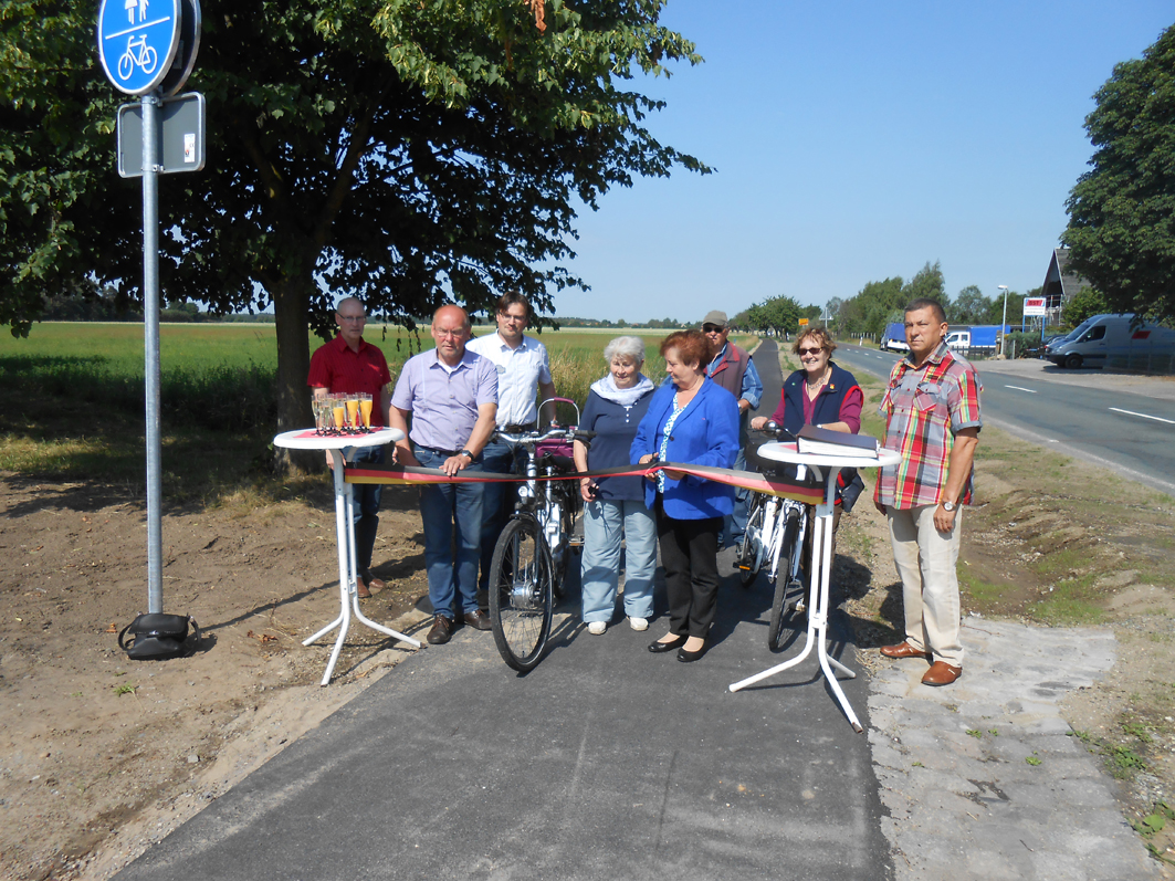 Der Neubau des Radweges war erforderlich geworden, weil der bisherige im Verlauf der vergangenen Jahre überwuchert, abgesackt und somit nicht mehr passierbar war. Insgesamt wurde der Radweg in zweimonatiger Bauzeit auf einer Länge von 1.350 Metern fertiggestellt. Damit einhergehend wurden die Feldzufahrten erneuert und auch ca. 250 Meter Graben überarbeitet, um eine weitere Verbesserung der Entwässerung zu erreichen.