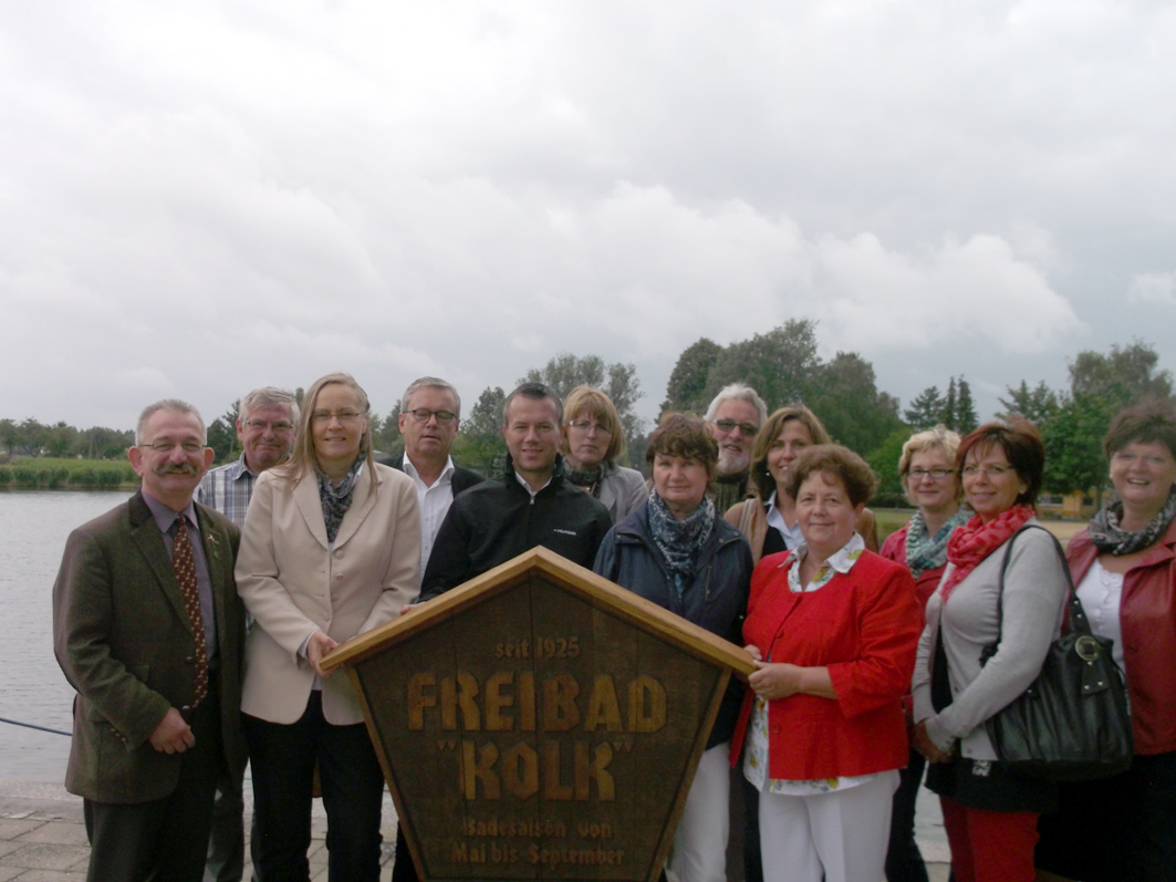 Wir können bereits jetzt absehen, dass die uns zur Verfügung stehenden EU-Mittel nicht ausreichen, um alle förderfähigen Projekte zu unterstützen, schätzte Verena Schlüsselburg ein. Man stehe im engen Arbeitskontakt mit dem Amt für Landwirtschaft, Flurneuordnung und Forsten (ALFF) Altmark, um möglichst rasch jenen Vorhaben Planungssicherheit zu geben, für die europäische Fördermittel bereit gestellt werden könnten, so die LAG-Vorsitzende weiter. Zu Beginn der Sitzung trafen sich die Vorstandsmitglieder, das Leader-Management und die Gäste aus beiden Landkreisen und aus dem ALFF als Bewilligungsbehörde am Naturbad Kolk in Bismark, die hier zu einem Gruppenfoto Aufstellung nahmen.