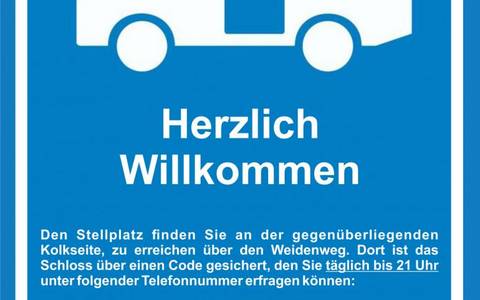 Die Caravanstellplätze verfügen über Strom- und Wasseranschluss über Münzgerät. Die Einfahrt des Stellplatzes erreichen Sie über den Weidenweg. Dort ist das Schloss über einen Code gesichert, den Sie  unter folgender Telefonnummer erfragen ... weiter...