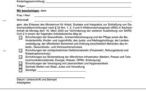 Der Landkreis stellt den Eltern im Rahmen der Geltung und der Beurteilung der Ausnahmeregelung zur Notbetreuung zur Verfahrensvereinfachung ein Formular Arbeitgeberbestätigung zur Verfügung. Sie können das nachfolgende ...