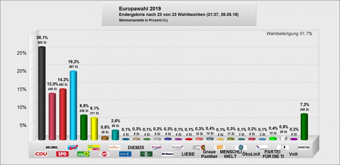 Hier finden Sie die Ergebnisse der Europawahl 2019