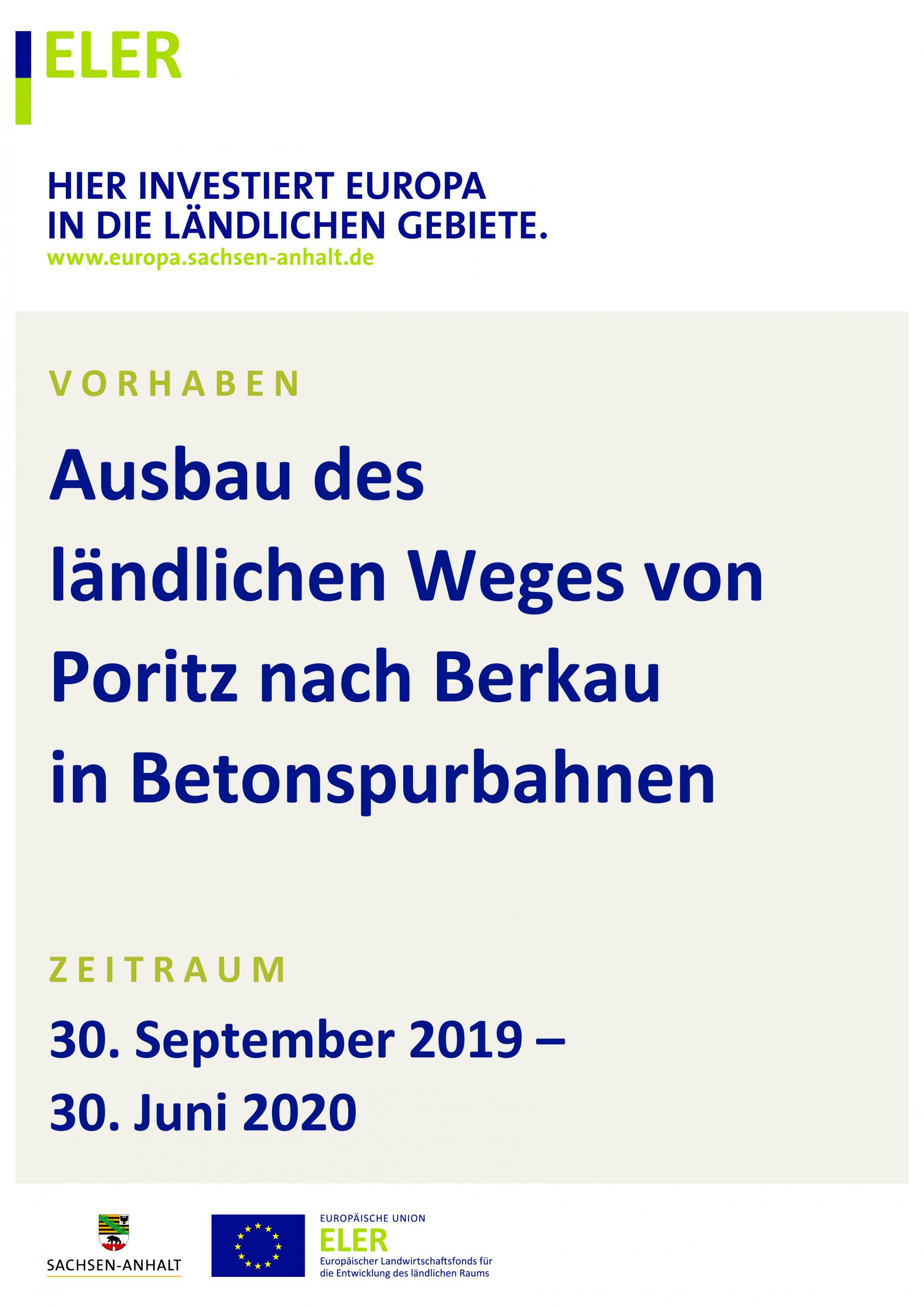 Ausbau der ländlichen Wege von Poritz nach Berkau - Förderung Dorferneuerung (ELER)