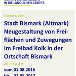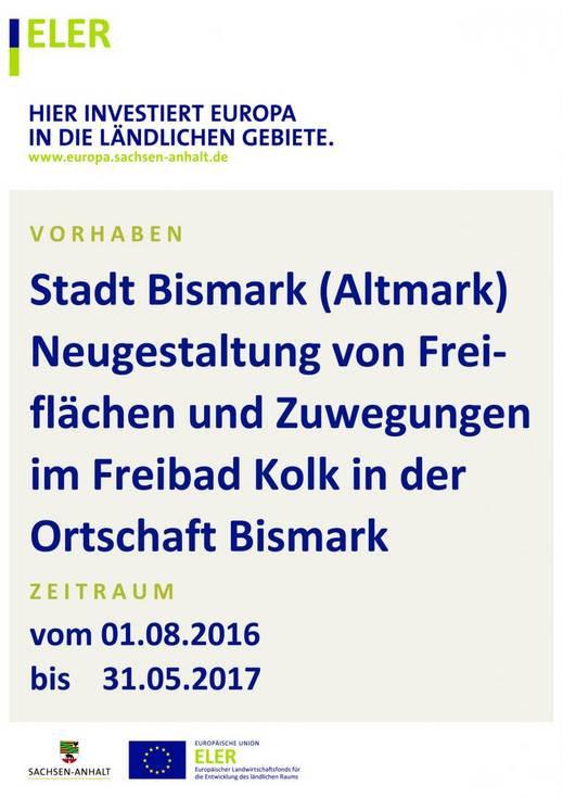 Das ALFF Altmark fördert in der jetzigen Antragsperiode 2016/2017 diese Maßnahme in der Stadt Bismark. Mit den Vorhaben wird die kommunale Infrastruktur verbessert. Die Zuwendungen wurden nach den Richtlinien zur Förderung der regionalen ländlichen Entwicklung in der Förderperiode 2014-2020 des Landes Sachsen-Anhalt (ELER) gewährt.