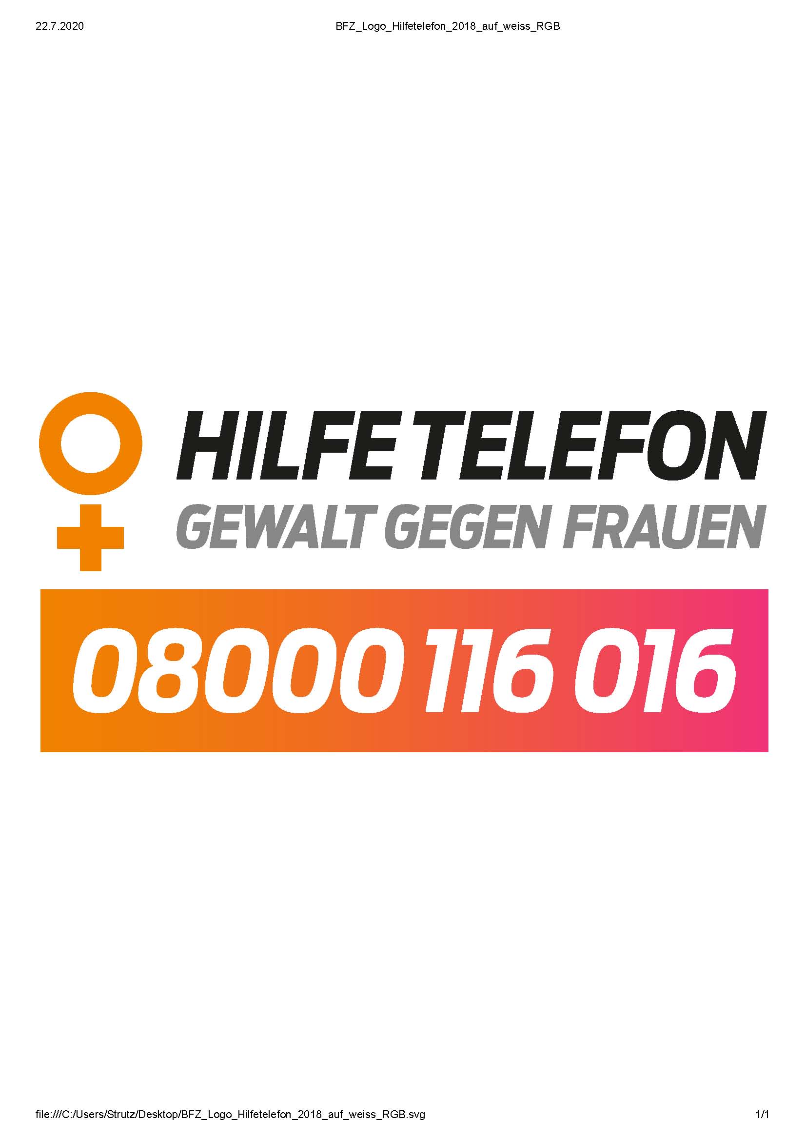 Das Bundesamt für Familie und zivilgesellschaftliche Aufgaben (BAFzA) bat in einem Schreiben um Unterstützung und rufen auf, das Hilfetelefon „Gewalt gegen Frauen“ noch bekannter zu machen. Ihr Ziel ist es – möglichst alle Frauen in Deutschland sollen das Angebot des Hilfetelefons „Gewalt gegen Frauen“ kennen. Jeder kann dazu beitragen, dass die 08000 116 016 und die Online-Beratung auf https://www.hilfetelefon.de bundesweit noch bekannter werden.