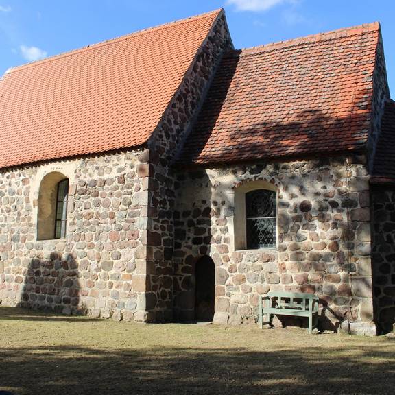Westlich am Dorfrand gelegen finden wir die spätromanische Dorfkirche von Bülitz. Sie präsentiert sich als dreiteiliges Bauwerk, bestehend aus Langhaus, Chor und Apsis. Dendrochronologische Untersuchungen weisen auf eine Errichtung um 1209 hin. Zur Besichtigung betreten wir den Kirchhof durch ein rundbogiges Backsteintor, das dem frühen 16. Jh. zuzuordnen ist. Auffallend ist der freistehende eichen- hölzerne Glockenturm. Am Mauerwerk der Kirche beeindruckt die sorgfältige Verarbeitung der Feldsteine. Das abgetreppte Rundbogenportal an der Südseite des Langhauses bildet den Eingang, hier bemerkenswert das sorgfältig profilierte Kämpfergesims. In der Barockzeit wurden die Fenster flachbogig erweitert. In dieser Zeit ist auch ein Fachwerkturm entstanden, der 1974 wegen Baufälligkeit abgetragen wurde.