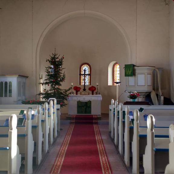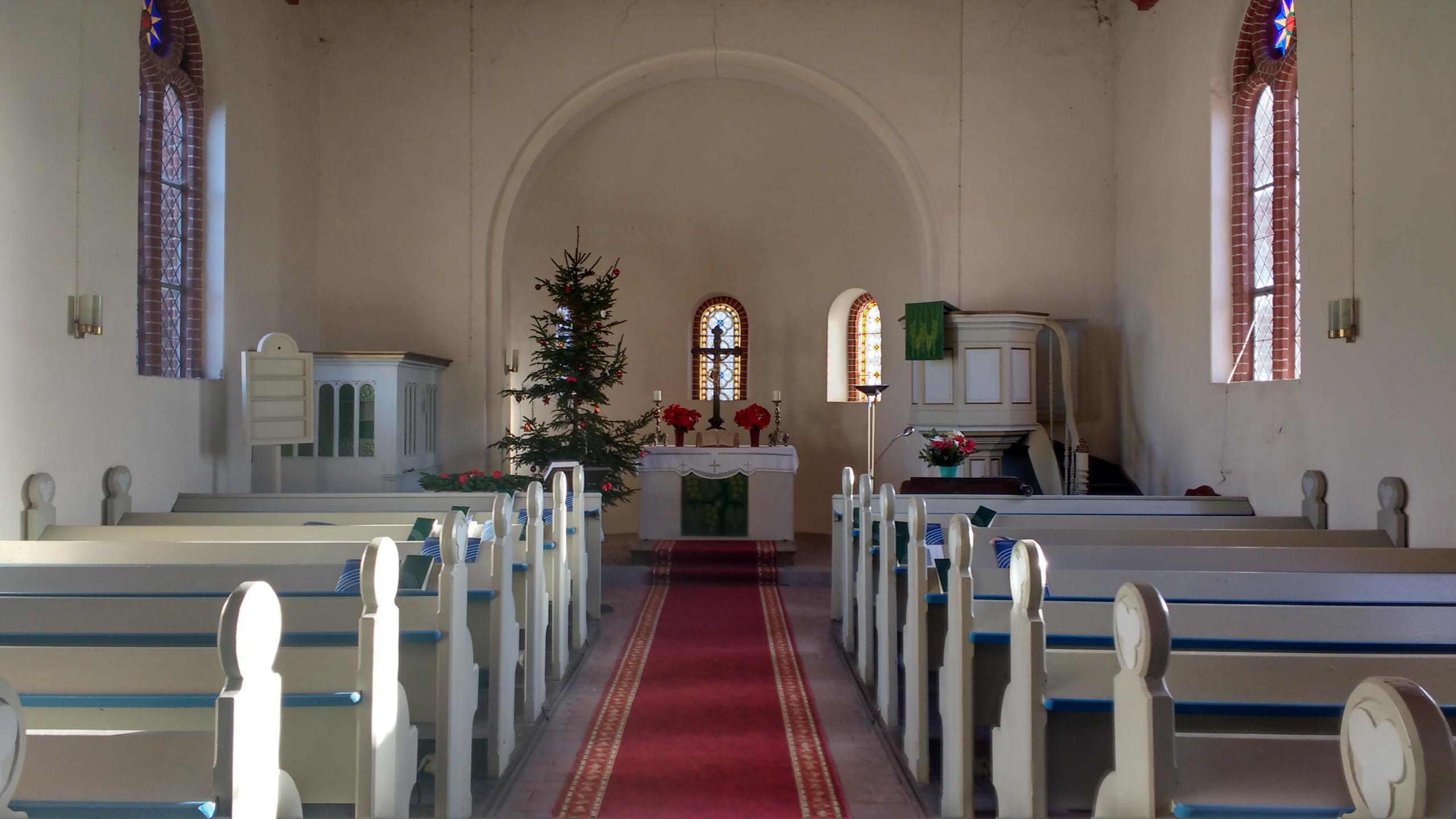 Vor der Wartenberger Dorfkirche steht man etwas verwundert, das Geheimnis ist schnell gelüftet, es handelt sich um einen Neubau aus dem Jahre 1881 im Stil des Historismus. Teile der alten Ausstattung (Altar) aus dem 15. Jh. befinden sich nach den Akten des Landeskonservators im Altmärkischen Museum in Stendal, ein Kruzifix in Gestalt eines Astkreuzes aus dem 15. Jh. wird in der Turmvorhalle verwahrt. Die neue Kirche, mit Ausnahme des Turmunterbaus, wurde in Backstein errichtet und präsentiert sich als dreiteiliger Bau, bestehend aus eingezogenem Westwerk und dem apsial geschlossenen Langhaus. Nach der älteren kunstgeschichtlichen Literatur gehörten zum Inventar unter anderem zwei 50 cm hohe Silberleuchter aus dem Jahre 1730.
