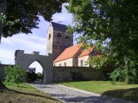 - Dorfkirche mit Kirchhofsmauer - romanischer Feldsteinbau, 12. Jahrhundert, restaurierte Schleifladenorgel aus dem Jahre 1740 mit 1116 Pfeifen.