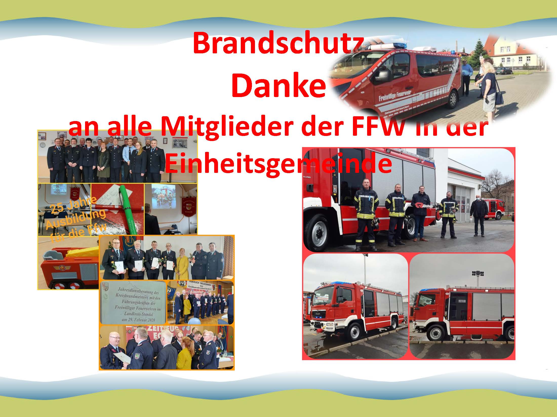 Unsere Kameradinnen und Kameraden der Freiwilligen Feuerwehren der Einheitsgemeinde haben im Jahr 2020 ihre Freizeit in den Dienst dieser gestellt. Die Einsatzbereitschaft in Coronazeiten abzusichern, war und ist eine Herausforderung. Diese haben sie gemeistert und werden es weiter tun.