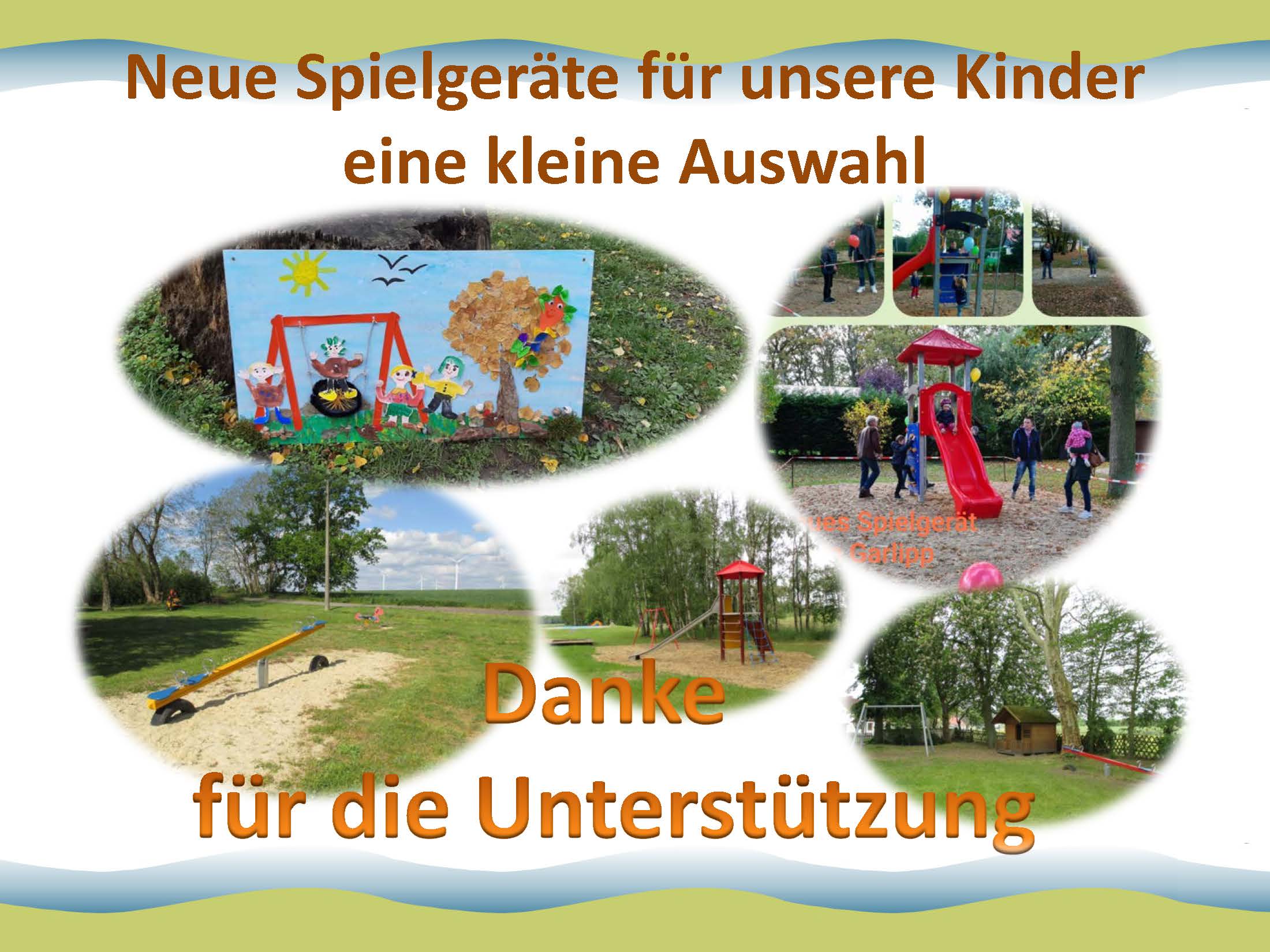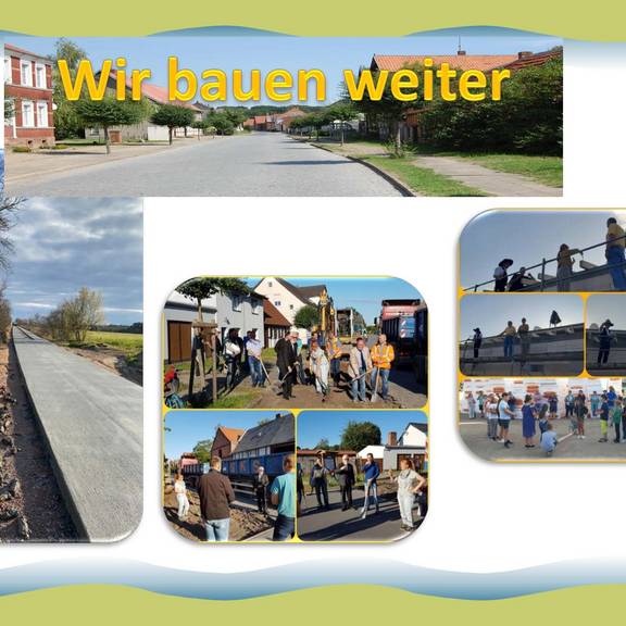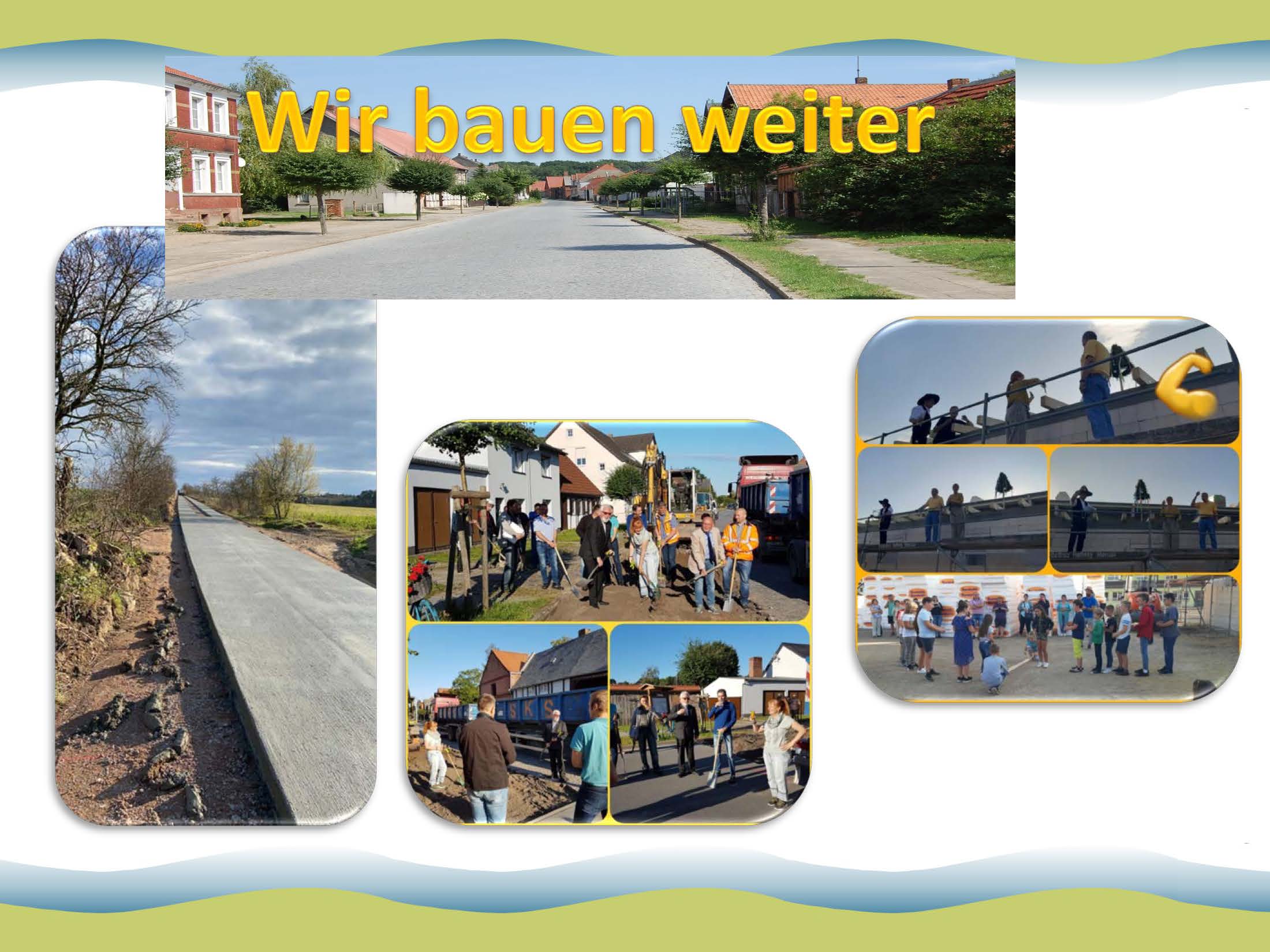 Ich möchte nur einige umgesetzte Projekte ansprechen – Abschluss der Sanierung Sporthalle in Kläden, Instandsetzungsmaßnahmen an den Dorfgemeinschaftshäusern Kremkau und Schinne, Straßenbau, ländlicher Wegebau zwischen Poritz und Berkau, Fertigstellung der Sanierungsmaßnahmen im Waldbad Möllenbeck, Aufstellung zahlreicher Spielgeräte, Beleuchtung von Kirchen usw.