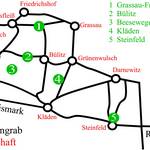 Wiesen, Wälder und Felder Gesamtlänge: 21 km Streckenführung: Kläden - Bülitz - Schorstedt - Möllenbeck - Dobberkau - Friedrichshof - Hohenwulsch - Beesewege - Garlipp - Kläden |