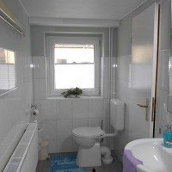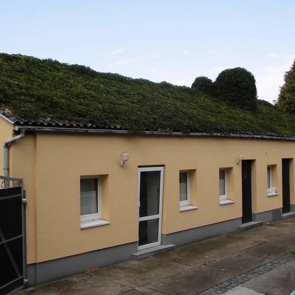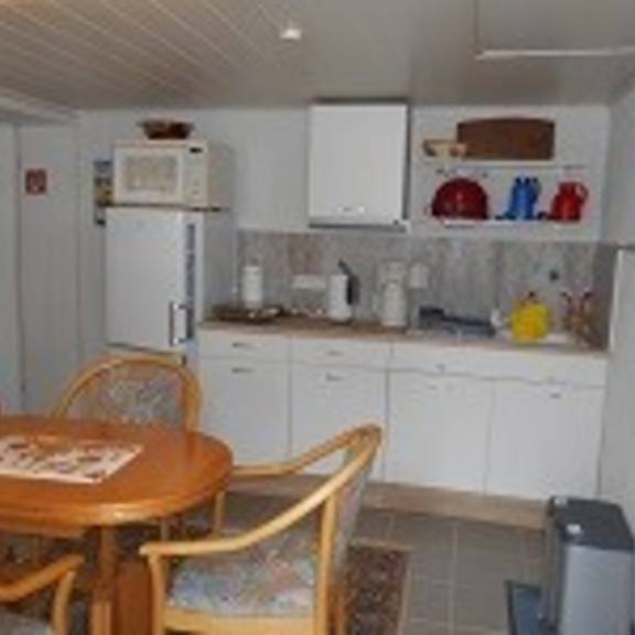 Ferienwohnung im separaten Gästehaus mit einem 3-Bettzimmer (ca. 20 m²), einer Wohnküche mit Essplatz (ca. 11 m²) und dem zugeh. Bad mit WC und Dusche (ca. 6,50 m²). Die Küchenzeile ist neben dem Kühlschrank mit dem Gefrierunterteil noch mit 2 Ceranfeldern, der Mikrowelle, elektrischem Wasserkocher, Kaffeemaschine, Toaster und Spülbecken ausgestattet.